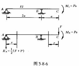 [例5-8-4] 用卡氏定理計(jì)算圖5-8-6所示梁C截面撓度。