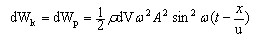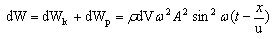 波傳到介質(zhì)中某處,該處體積元開始振動(dòng),具有動(dòng)能dWk,同時(shí)該處質(zhì)元體積產(chǎn)生形變,也具有勢(shì)能dWp,兩者位相相同,最大值也相同,具體形式為: