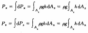 式(6-2-6)右邊的積分等于曲面AB在鉛直平面上投影面積AZ對水面的水平軸y的靜矩。設hc為AZ的形心在水面下的淹沒深度,