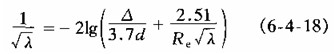 式中 λ為沿程阻力系數。但紊流中的λ并不滿足式(6-4—10)的關系。后面將討論紊流中久究竟如何求得。