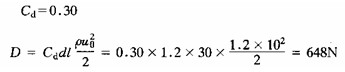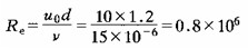 [例6-4-4] 圓柱形煙囪高l=30m,直徑d=1.2m,水平風(fēng)速u0=l0m/s??諝?rho;=1.2kg/m3,ν=15X10-6m2/s。求煙囪所受風(fēng)的推力。