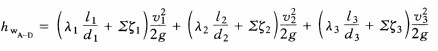 式中 λ1、λ2、λ3分別為各管段的沿程阻力系數(shù);∑ζ1、∑ζ2、∑ζ3分別為各管段的局部阻力系數(shù)之和,管段聯(lián)接處的局部損失視其阻力系數(shù)對(duì)應(yīng)于哪段的流速水頭則計(jì)入該管段損失內(nèi)。