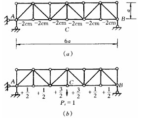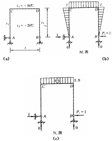 [例3—4] 圖3—7所示剛架施工時的溫度為300C,冬季外側(cè)溫度為—200C,內(nèi)側(cè)溫度為100C,各桿截面相同,均為矩形截面,截面高度為h,材料的線膨脹系數(shù)為α。試求剛架在冬季溫度時B點的水平位移ΔBH。