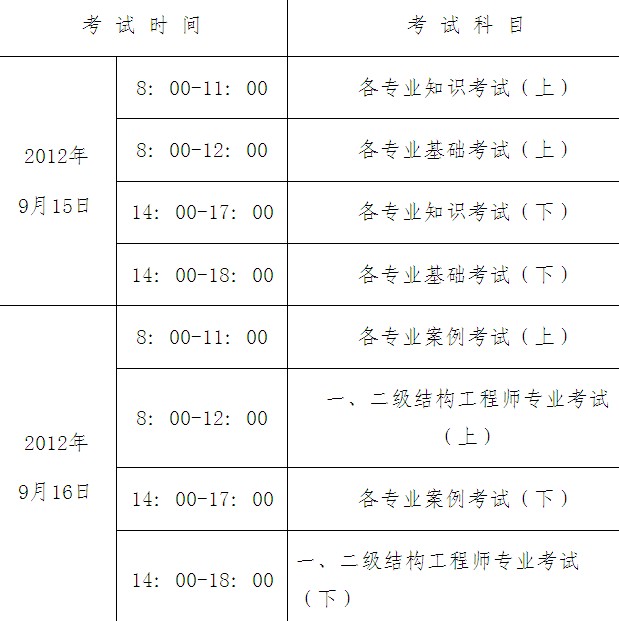 2.一、二級(jí)注冊(cè)結(jié)構(gòu)工程師專業(yè)考試均為一天,考試時(shí)間為上、下午各4小時(shí)。專業(yè)考試為非滾動(dòng)管理考試,考生應(yīng)在一個(gè)考試年度內(nèi)通過全部考試。
