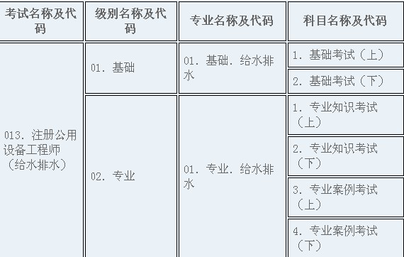 2013年度勘察設(shè)計(jì)注冊(cè)工程師執(zhí)業(yè)資格考試科目及代碼對(duì)應(yīng)表