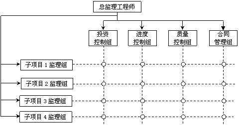 1.考慮到該監(jiān)理單位各項職能管理老師較多,希望組建由子項目系統(tǒng)和職能系統(tǒng)組成的縱橫交叉的監(jiān)理組織結(jié)構(gòu),以便更能充分發(fā)揮職能管理老師的專業(yè)管理作用,實現(xiàn)行政指揮集權(quán)和職能管理分權(quán)的最優(yōu)結(jié)合,減輕總監(jiān)理工程師負擔;