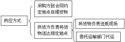 訂購物資或產(chǎn)品的供應(yīng)方式,可以分為采購方到合同約定地點自提貨物和供貨方負責(zé)將貨物送達指定地點兩大類,而供貨方送貨又可細分為將貨物負責(zé)送抵現(xiàn)場或委托運輸部門代運兩種形式。