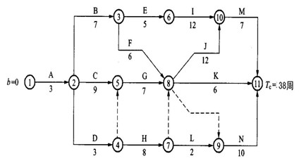 1.關鍵工作為A.C.G、J、M,應選擇關鍵工作作為壓縮對象;又因為壓縮G、M增加的趕工費用最低、次低,并且均可壓縮一周,壓縮之后仍為關鍵工作,因此應分別將分部工程G、M各壓縮1周。