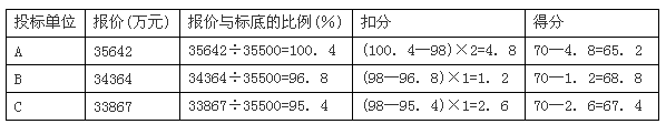 (3)計(jì)算各投標(biāo)單位的綜合得分: