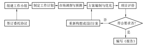 答:可行性研究的基本工作步驟大致可以概括為:○1簽訂委托協(xié)議;○2組建工作小組;○3制定工作計(jì)劃;○4市場(chǎng)調(diào)查與預(yù)測(cè);○5方案編制與優(yōu)化;○6項(xiàng)目評(píng)價(jià);○7編寫可行性研究報(bào)告;○8與委托單位交換意見。如下圖所示。
