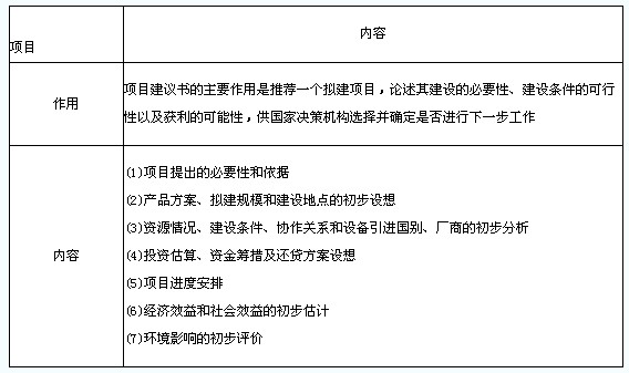 2.建設(shè)工程項(xiàng)目建議書階段的作用和工作內(nèi)容(表1-11)
