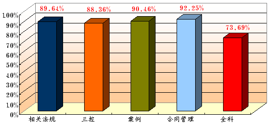 | 監(jiān)理基本理論和相關(guān)法規(guī) | 72.55% | 79.00% | 83.90% | 88.53% | 88.90% | 89.13% | 89.64% |