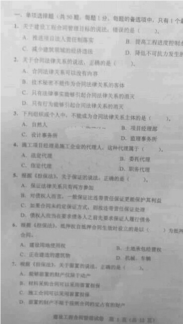 2015監(jiān)理工程師考試《合同管理》真題(部分)