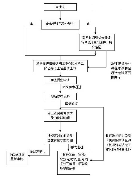 2010年教師資格證考試申請--報(bào)名--取證流程圖