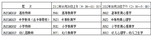 (三)“教師資格考試”設(shè)置的層次和考試科目如下表, 用于“教師資格考試”的考號只能選擇表中所列層次及相應(yīng)課程。