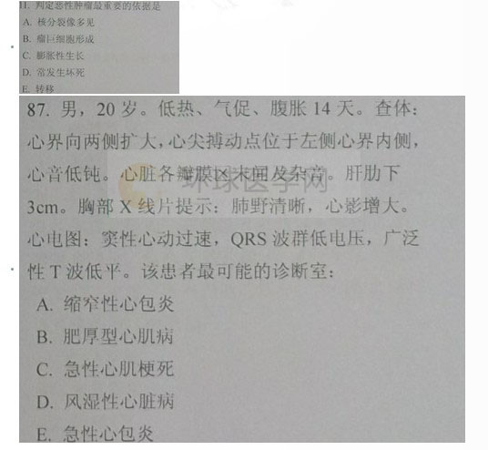 2013年臨床助理醫(yī)師考試已經(jīng)結(jié)束了,環(huán)球網(wǎng)校醫(yī)學(xué)考試網(wǎng)小編收集整理了此次考試的部分真題,希望對(duì)大家有所幫助。