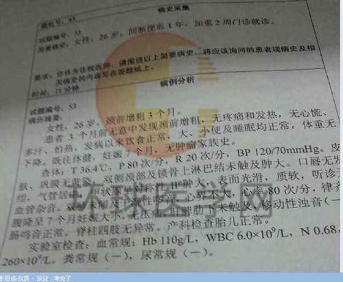 2013年臨床執(zhí)業(yè)醫(yī)師實踐技能考生回憶7月1日(9)