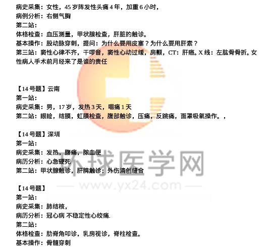 2013年深圳臨床執(zhí)業(yè)醫(yī)師技能操作考題114題