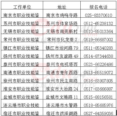江蘇各市職業(yè)技能鑒定中心報(bào)名電話一覽表
