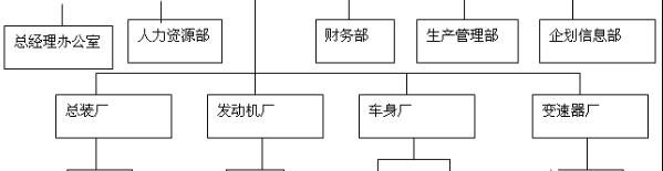 集團下屬有很多分廠,各個分廠實行廠長負責制,獨立核算,分別構成各個獨立的利潤中心,因此,可以分成四個事業(yè)部:總裝廠、發(fā)動機廠、車身廠和變速器廠。 (2分)