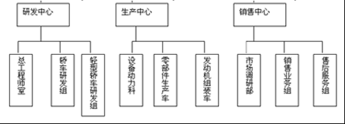 發(fā)動機廠的生產(chǎn)經(jīng)營活動連續(xù)性很強,根據(jù)生產(chǎn)技術特點及其對管理的不同要求,可以將發(fā)動機廠分為三個組織單位:研發(fā)中心、生產(chǎn)中心和銷售中心,將它們看成是相對獨立的生產(chǎn)經(jīng)營部門,賦予其盡可能大的經(jīng)營自主權,擁有自己的職能結構,使每一單位負有“模擬性”的盈虧責任,實現(xiàn)“模擬”的獨立經(jīng)營權、獨立核算,以此調(diào)動各個組織單位的生產(chǎn)積極性。 (2分)