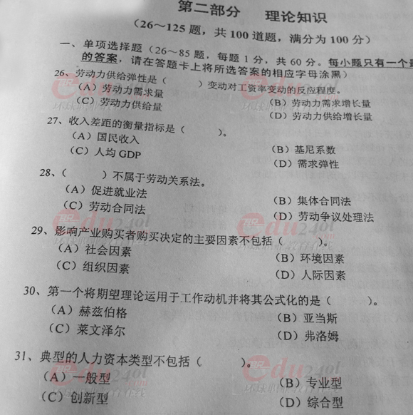 2011年11月人力資源管理師考試二級理論知識考試已經(jīng)結(jié)束,環(huán)球網(wǎng)校在第一時(shí)間為考生及學(xué)員整理了真題,網(wǎng)校預(yù)祝學(xué)員們能夠取得好成績。