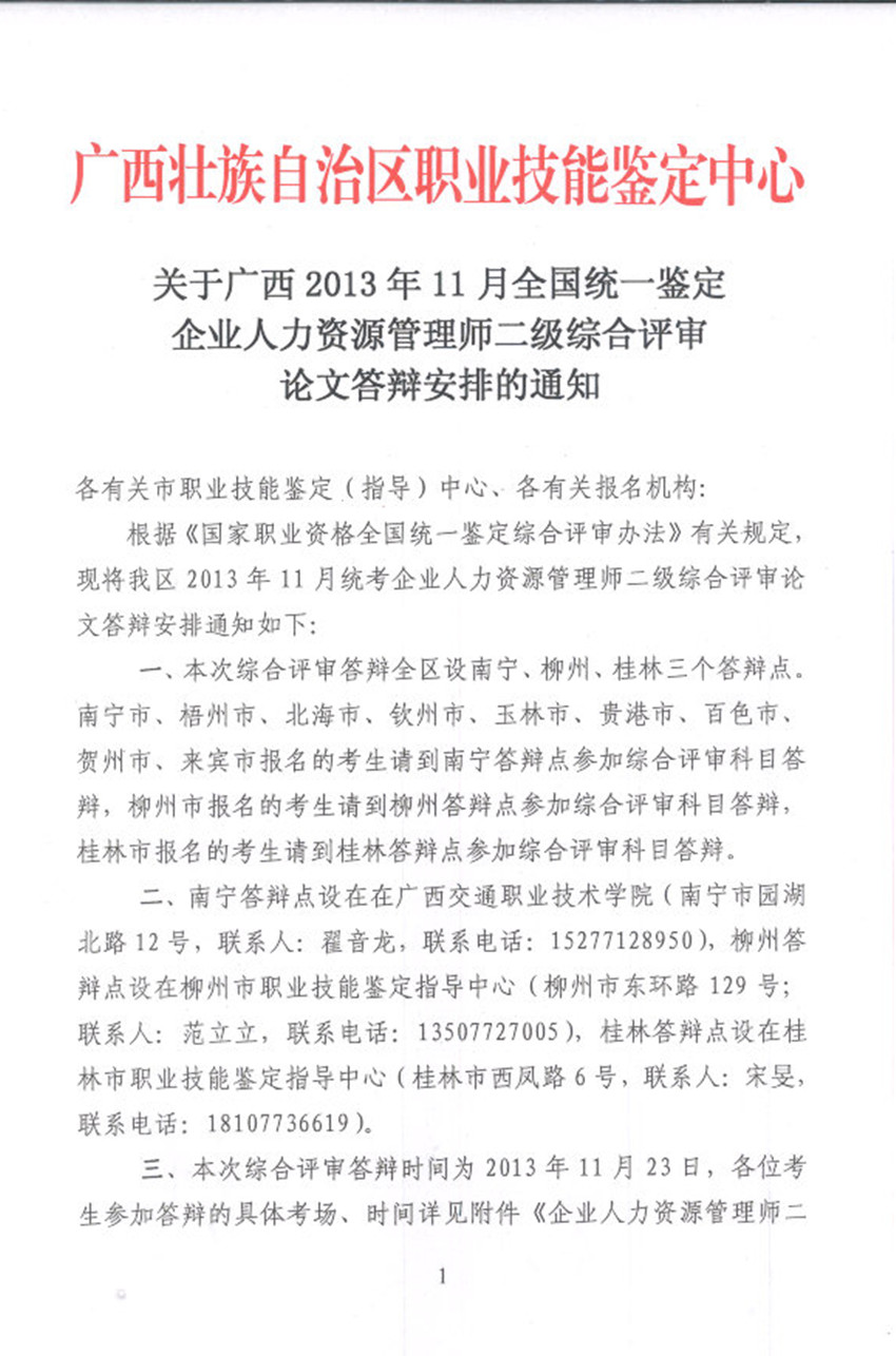 摘要 關(guān)于廣西2013年11月全國統(tǒng)一鑒定企業(yè)人力資源管理師二級綜合評審論文答辯安排的通知
