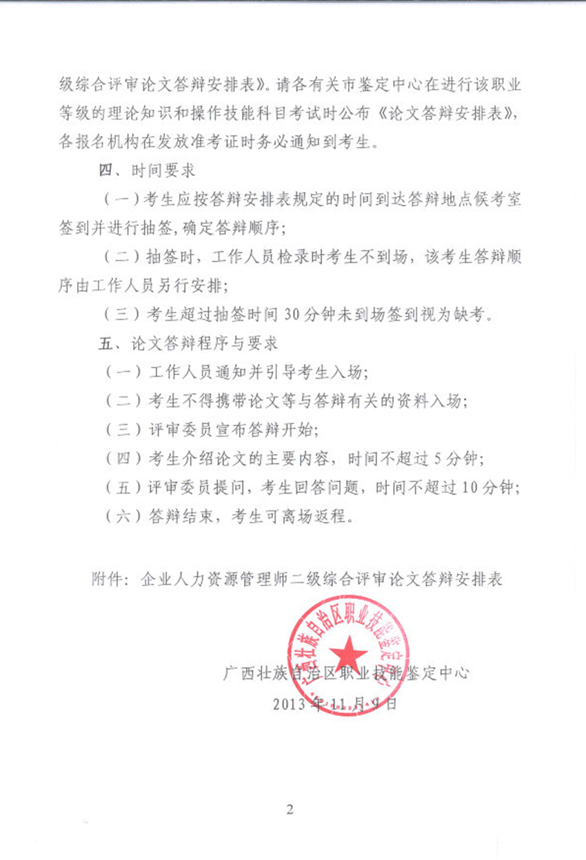 廣西省2013年11月人力資源管理師二級綜合評審論文答辯安排通知