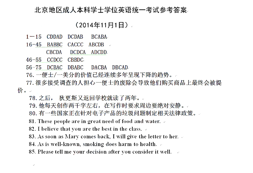 摘要 北京市2014年5月成人英語三級真題答案,環(huán)球網(wǎng)校成人英語三級頻道為您提供!