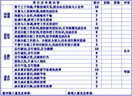 高級(jí)職員(主管以上)考核表(轉(zhuǎn)下表)