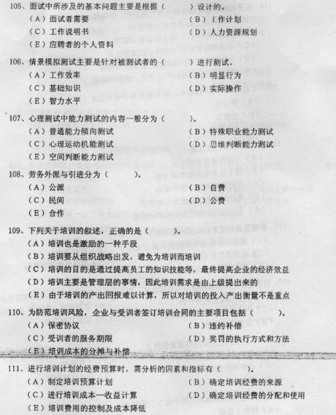 06年5月助理人力資源管理師試題(七)