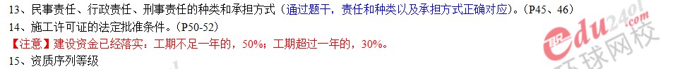 施工管理的內容是歷年來考察的重點,其中,施工許可證的法定批準條件是施工管理的基礎。教研團隊研究分析得出,今年考察施工許可證的幾率相對較高,尤其注意其法定的批準條件。