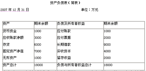 1.已知:某公司2007年銷(xiāo)售收入為20000萬(wàn)元,銷(xiāo)售凈利潤(rùn)率為12%,凈利潤(rùn)的60%分配給投資者。2007年12月31日的資產(chǎn)負(fù)債表(簡(jiǎn)表)如下: