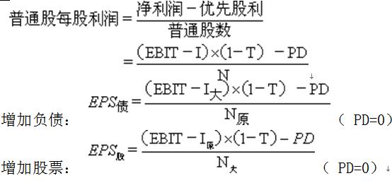 能使得上述條件公式成立的EBIT為每股盈余無差別點(diǎn)EBIT。