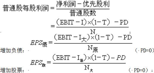 (二)每股收益無差別點法(說明:2008年教材中“籌資無差別點”改為“每股收益無差別點”。)