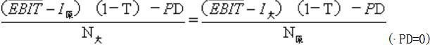 能使得上述條件公式成立的EBIT為每股盈余無差別點EBIT。