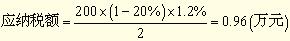 [例9-4]某廠辦公樓、廠房等房產(chǎn)2006年的賬面原值為200萬(wàn)元,按規(guī)定房產(chǎn)原值扣除比率為20%,每年4月、6月分兩次繳納,則每次應(yīng)繳納房產(chǎn)稅為:
