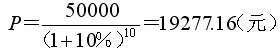 某企業(yè)想要在十年底得到一筆50000元的款項,年利率10%,按復(fù)利計算,則現(xiàn)在需要在銀行存入的款項金額為: