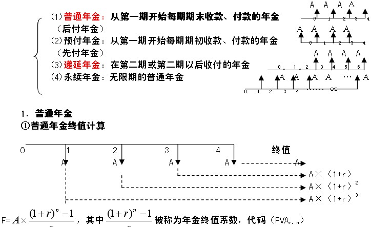年金種類----普通年金、預(yù)付年金、遞延年金、永續(xù)年金等。