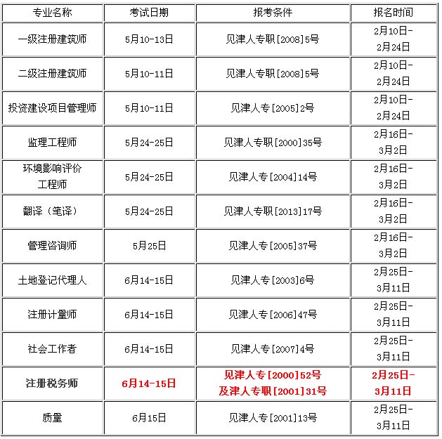 根據(jù)人力資源和社會(huì)保障部辦公廳《關(guān)于2014年度專業(yè)技術(shù)人員資格考試計(jì)劃及有關(guān)問題的通知》(人社廳函〔2013〕544號(hào))安排,現(xiàn)將2014年度一級(jí)注冊(cè)建筑師等十二種專業(yè)技術(shù)人員資格考試報(bào)名工作及有關(guān)問題通知如下: