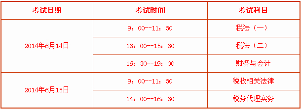 二、2014年注稅考試安排: