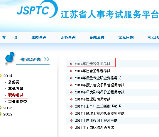 具體查詢方式:登錄“江蘇省人事考試服務(wù)平臺”→點(diǎn)擊“成績查詢”→職稱考試→2014年注冊稅務(wù)師考試。