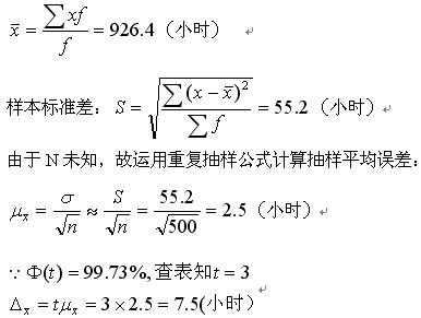 試計算平均耐用時間的抽樣平均誤差,若以99.73%的概率可靠程度為標準,計算抽樣平均數(shù)的抽樣極限誤差。