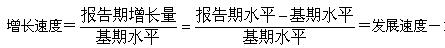 增長速度是報告期增長量與基期水平的比值,表明報告期水平比基期增長(或降低)了百分之幾或若干倍。計算公式: