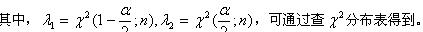 通過推導可以得到μ為已知時,方差 的一個置信度為1-α的置信區(qū)間: