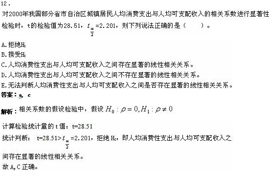 2012年《統(tǒng)計(jì)相關(guān)知識(shí)》相關(guān)分析習(xí)題(九)