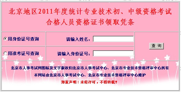 北京2011年統(tǒng)計師考試證書領(lǐng)取憑條查詢?nèi)肟?/h1>