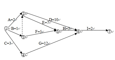 (五)已知某個項目的網(wǎng)絡圖如下,該項目包含九個活動過程即A、B、C、D、E、F、G、H、I,并且該項目的活動關系與資源耗費如圖所示(單位:天)。