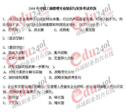 2008年經(jīng)濟師考試已于11月1日結(jié)束,環(huán)球網(wǎng)校及時整理了2008年經(jīng)濟師考試真題和答案,歡迎廣大考生核對考試答案,敬請廣大經(jīng)濟師考生關(guān)注。以下是中級工商管理專業(yè)知識與實務(wù)考試真題: