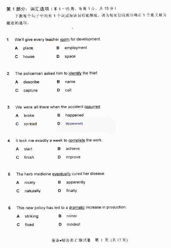 第一部分 詞匯選項(xiàng)題
